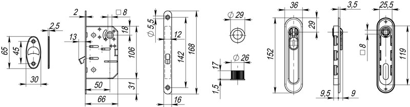 Материал изготовления: Zamak. Минимальная толщина двери 38 мм.