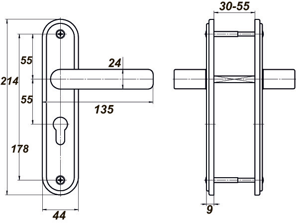 НР0901 - Ручка на планке для цилиндровых замков. Материал алюминиевый сплав. Подходят для установки на замки ЗВ4 4001, ЗВ4 402.