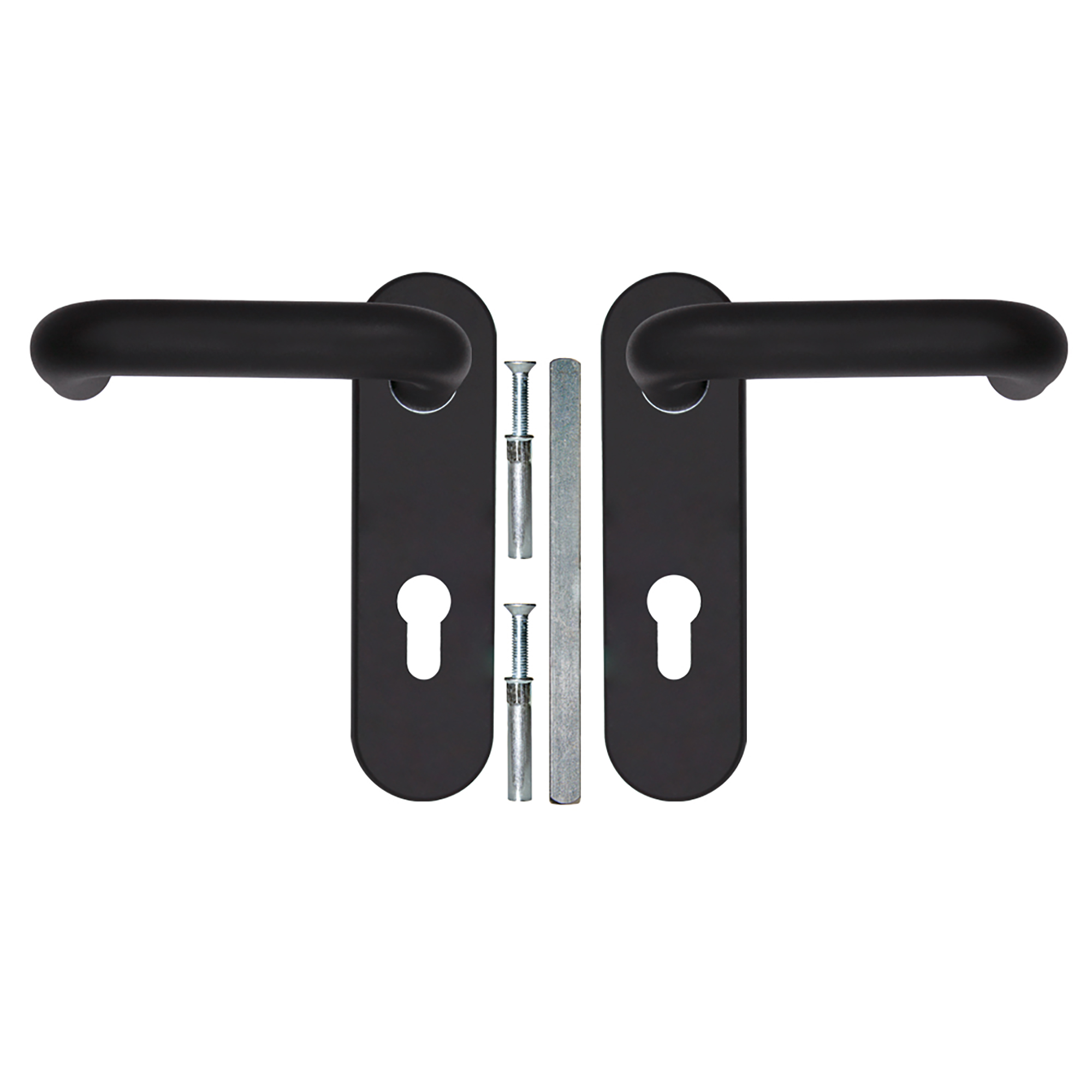 Дверные ручки на планке Fuaro DH-0433 NE с пружиной предназначены для установки на противопожарные двери толщиной 40-70 мм (без подпиливания квадрата 57 мм - 95 мм). Подходят для комплектации всех противопожарных замков с межосевым расстоянием 72 мм. Рекомендуется использовать в комплекте с противопожарными замками Fuaro FL-0432, FL-0433, FL-0434. Прочная возвратная пружина препятствует провисанию ручки, облегчает работу привода замка. Материал изготовления ручки: нескользящий огнеупорный нейлон. Материал основания: оцинкованная сталь. Крепление: сквозное, скрытое. Цвет: черный.