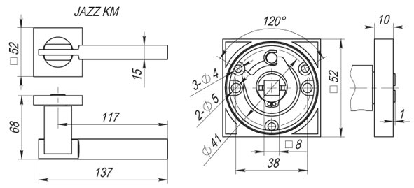 Прямые линии, безупречная эргономика и лаконичный дизайн в стиле hi-tech свойственны дверным ручкам серии KM. Дверная ручка на раздельном основании Fuaro JAZZ KM на квадратном основании подходит для установки на внутренние входные и межкомнатные двери. Максимальная масса двери 60 кг. Посадочные размеры оснований совместимы со всеми типами межкомнатных механизмов. Материал изготовления: ZAMAK (сплав цинка, алюминия, магния и меди). Гальваническое покрытие прошло тест на устойчивость к коррозии в соляном тумане - более 72 часов. Ресурс работы дверных ручек более 150 000 циклов открывания/закрывания, что гарантирует безотказную работу двери более чем на 10 лет. Стяжные винты в комплекте обеспечивают более прочное крепление на полотне двери, подходят для установки на двери толщиной 35-55 мм. Цвет: матовый никель/хром. В комплект входят: стяжные винты, соединительный квадрат 8x105 мм, саморезы, фиксирующие винты, шестигранник.