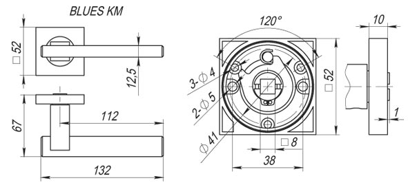 Прямые линии, безупречная эргономика и лаконичный дизайн в стиле hi-tech свойственны дверным ручкам серии KM. Дверная ручка на раздельном основании Fuaro BLUES KM на квадратном основании подходит для установки на внутренние входные и межкомнатные двери. Максимальная масса двери 60 кг. Посадочные размеры оснований совместимы со всеми типами межкомнатных механизмов. Материал изготовления: ZAMAK (сплав цинка, алюминия, магния и меди). Гальваническое покрытие прошло тест на устойчивость к коррозии в соляном тумане - более 72 часов. Ресурс работы дверных ручек более 150 000 циклов открывания/закрывания, что гарантирует безотказную работу двери более чем на 10 лет. Стяжные винты в комплекте обеспечивают более прочное крепление на полотне двери, подходят для установки на двери толщиной 35-55 мм. Цвет: матовый никель/хром. В комплект входят: стяжные винты, соединительный квадрат 8x105 мм, саморезы, фиксирующие винты, шестигранник.