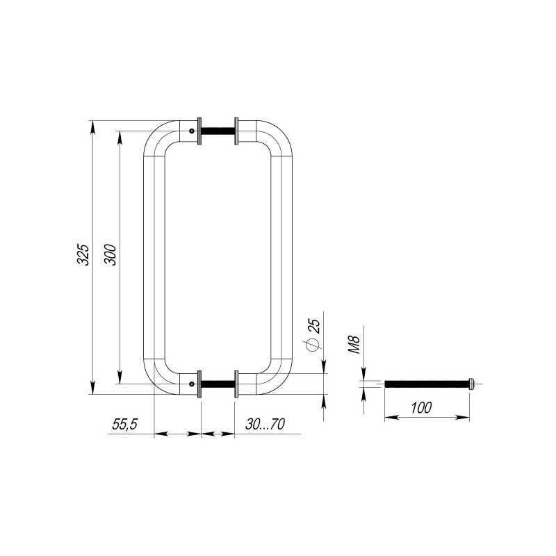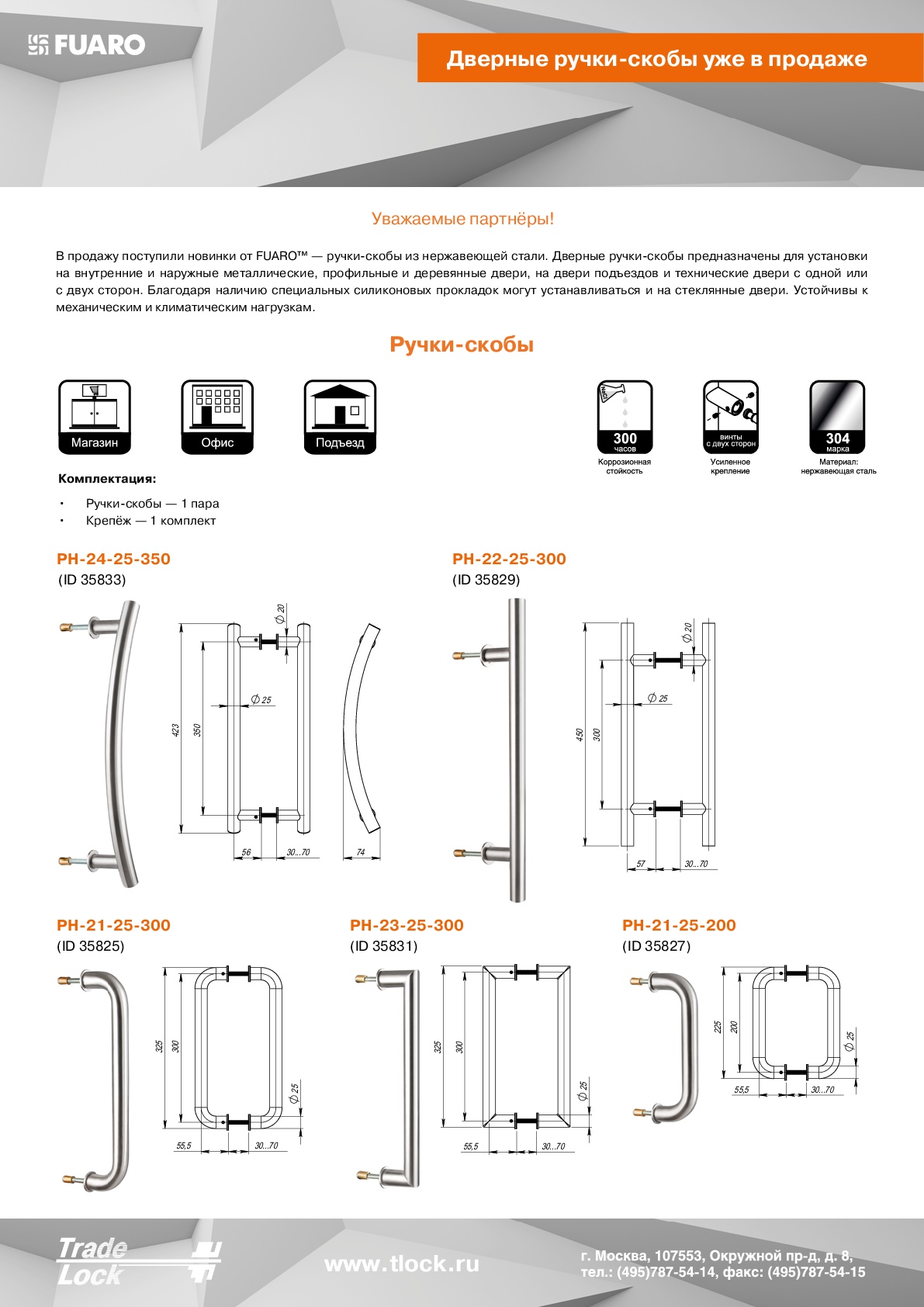 Дверная Ручка-скоба PH-21-25/300-INOX из нержавеющей стали предназначены для установки на внутренние и наружные металлические, профильные и