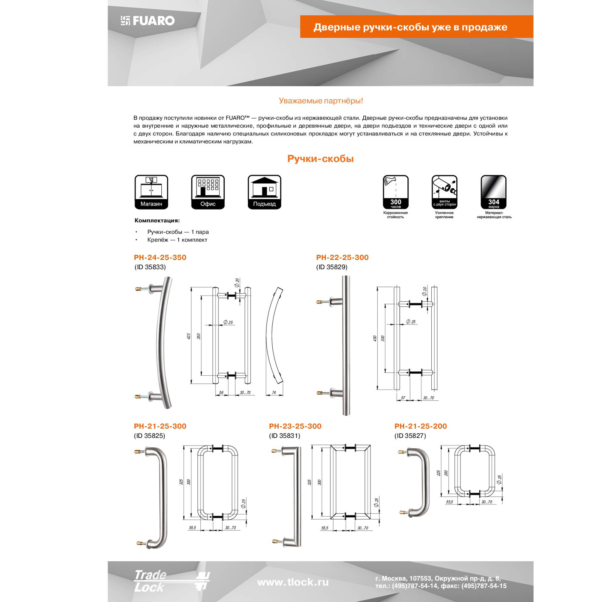 Дверная Ручка-скоба PH-21-25/200-INOX из нержавеющей стали предназначены для установки на внутренние и наружные металлические, профильные и