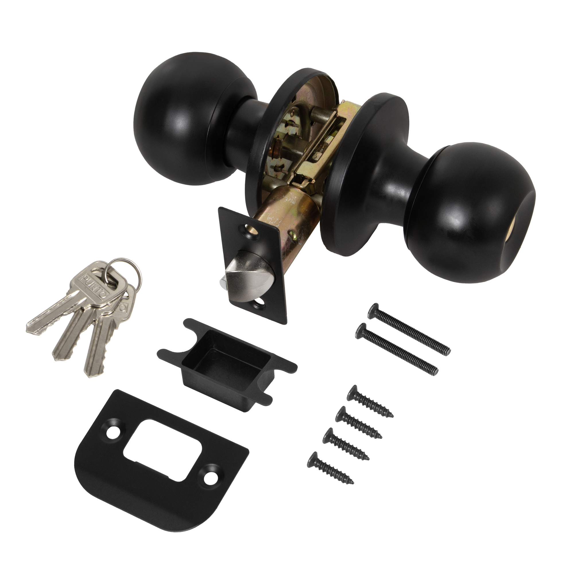 Комплект дверных ручек с защелкой (KNOB) Punto предназначен для установки в межкомнатные двери толщиной 35-45 мм. Подходит для дверей правого и левого открывания. Гальваническое покрытие прошло тест на устойчивость к коррозии в соляном тумане и соответствует 1 классу ГОСТ. Бэксет защелки регулируется - 60/70 мм. Материал изготовления: сталь. Комплектация: защелка, ответная планка с декоративной заглушкой, дверные ручки, крепежная фурнитура, шаблон и инструкция по установке.