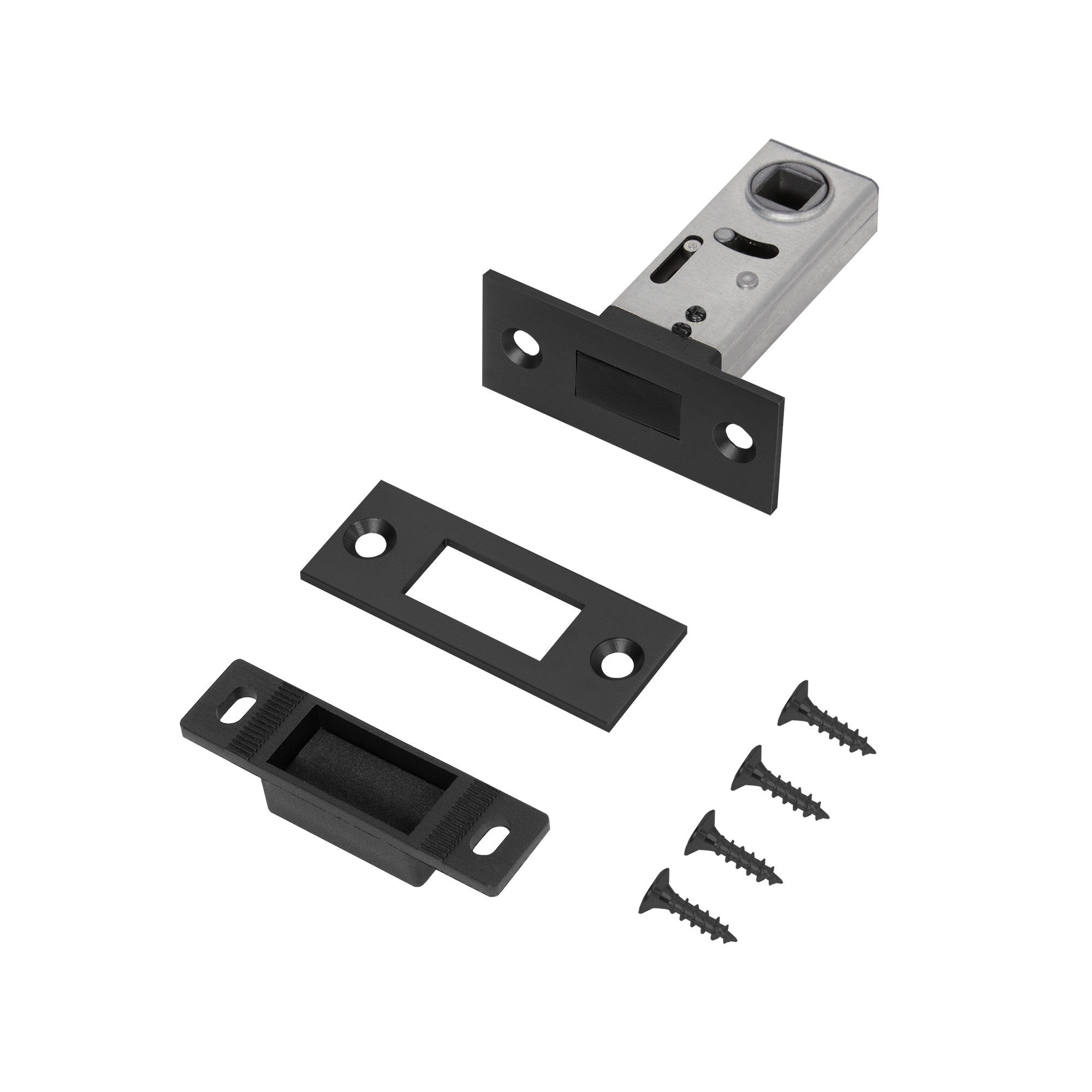 Отверстия под стяжные винты находятся на расстоянии 38 мм. Размер бэксета - 50 мм. Регулируемая ответная планка с магнитной вставкой ±1,5 мм. Возможна установка дверных ручек на стяжные винты для более прочного крепления. Цвет: черный. В комплектацию входят: ответная планка с магнитной вставкой и крепежная фурнитура в цвет изделия.