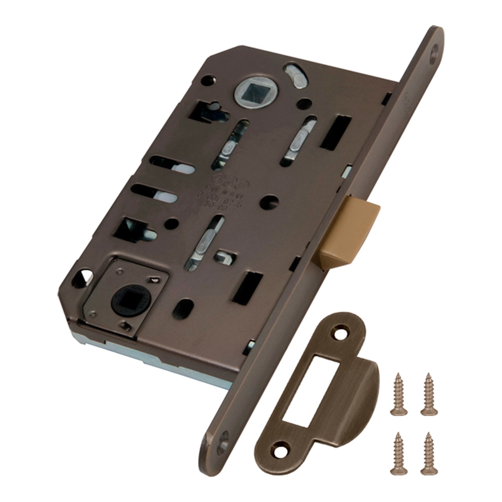 Замок врезной бесшумный B01102.50.12.567 с защелкой WC серии MEDIANA EVOLUTION предназначен для установки в межкомнатные двери. В комплектацию входит ответная планка B01000.13.12 короткая с загнутым язычком. Замок подходит для левых и правых дверей. Более тихий замок благодаря новой конструкции и новым внутренним компонентам. Бесшумная пластиковая защелка с двойным наклоном может фиксироваться ключом внутри замка (при перевозке деревянного полотна). Новая защищенная патентом система поворота защелки. Цвет: античная бронза. Упаковка: блистер.