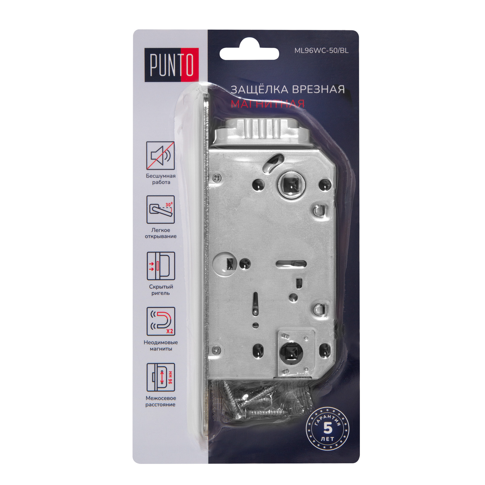 Дверная магнитная защелка Punto серии ML96WC-50/BL предназначена для установки в деревянные межкомнатные и сантехнические двери, подходит для дверей левого и правого открывания. Корпус выполнен из стали. Бесшумность работы обеспечивается за счет магнитного механизма, который фиксирует дверь только в закрытом положении. Защелка прошла испытания и имеет высший 4 класс надежности (250 000 циклов открывания/закрывания), что позволяет рекомендовать их для установки на двери помещений с большой проходимостью. Упаковка : блистер.