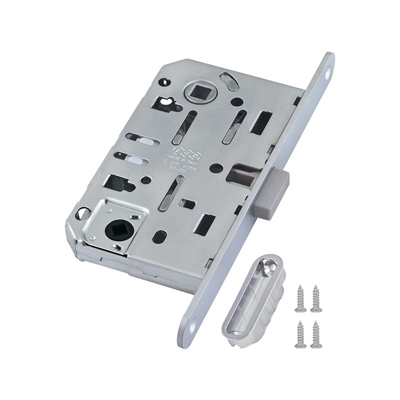 Замок врезной B06102.50.34.567 с защелкой WC серии MEDIANA POLARIS предназначен для установки в межкомнатные двери. Бесшумный магнитный замок взаимозаменяемый с MEDIANA EVOLUTION. Прямой ригель обеспечивает универсальность замка: подходит для левых и правых дверей. Остроумное решение ответной части, точность закрывания и простота установки. В комплект входит ответная планка B2402.05.34. Цвет: матовый хром. Упаковка: блистер.