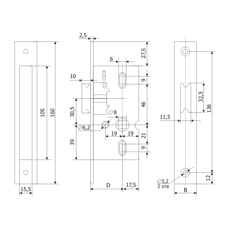 Размер сечения квадрата фиксатора