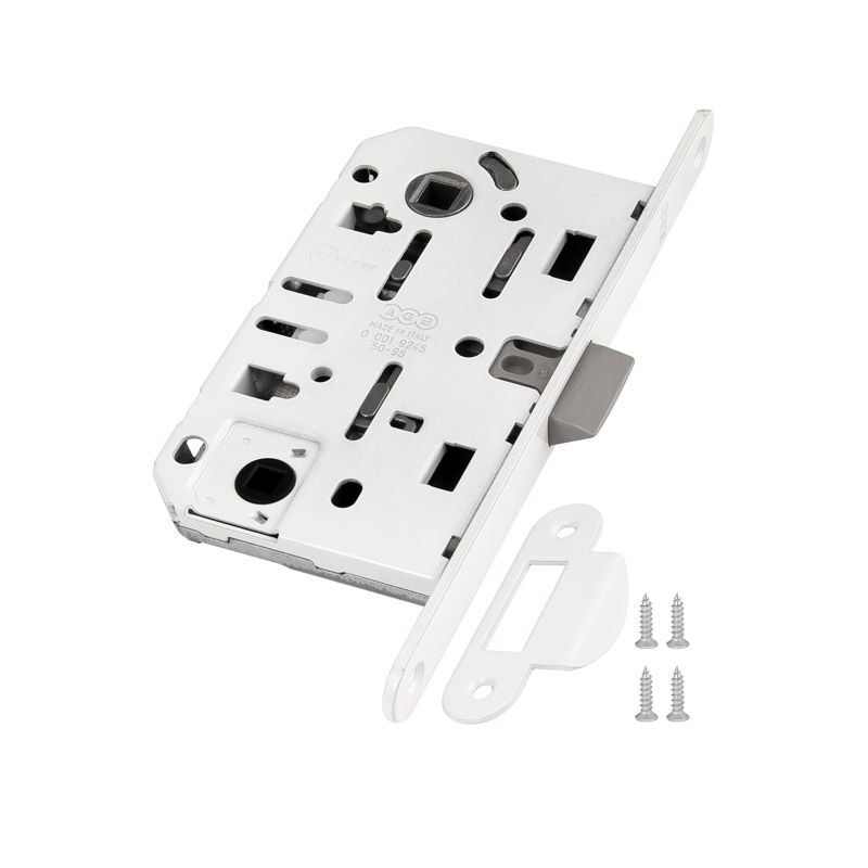 Замок врезной бесшумный B01102.50.34.567 с защелкой WC серии MEDIANA EVOLUTION предназначен для установки в межкомнатные двери. В комплектацию входит ответная планка B01000.13.34 короткая с загнутым язычком. Замок подходит для левых и правых дверей. Более тихий замок благодаря новой конструкции и новым внутренним компонентам. Бесшумная пластиковая защелка с двойным наклоном может фиксироваться ключом внутри замка (при перевозке деревянного полотна). Новая защищенная патентом система поворота защелки. Цвет: белый. Упаковка: блистер.