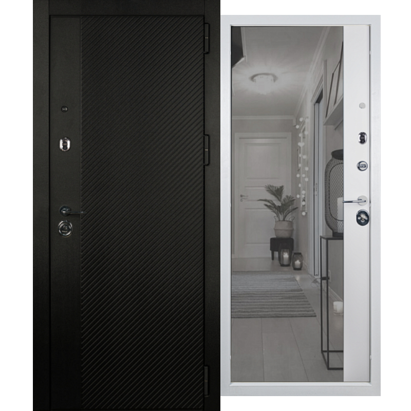 Входная дверь с зеркалом и тремя уплотнителями, МДФ/МДФ