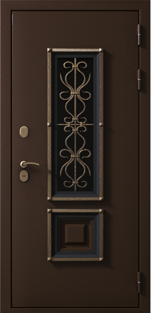 Входная дверь со стеклом и тремя петлями производства Ferroni (Россия)