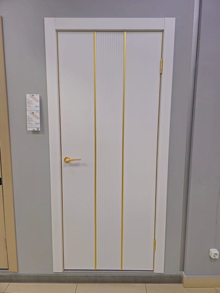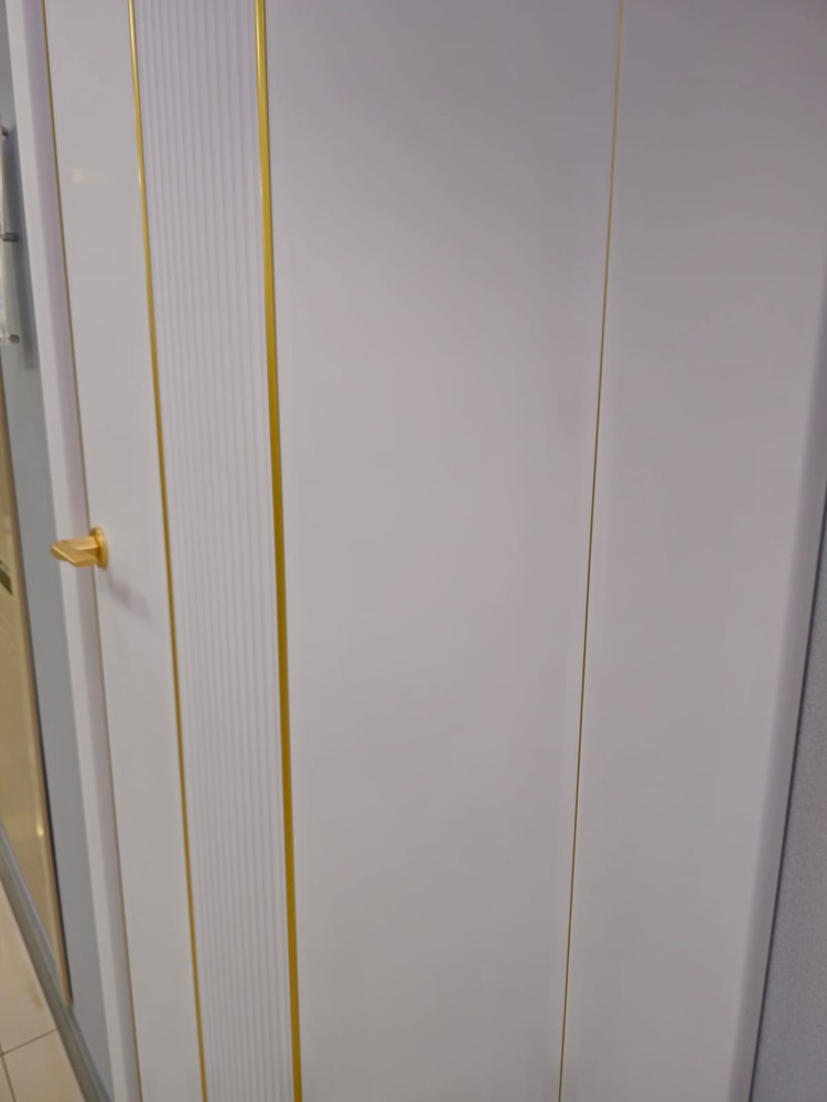 Конструктив: Каркасно-щитовая. Каркас выполнен из ХДФ-бруса и обшит щитом МДФ -6мм. Дверное полотно усилено рёбрами жесткости (МДФ) и сотовым гофрокартоном. Дополняют конструкцию 2 кромки в золотом цвете , выполненные из анодированного алюминия.Декоративные элементы : Золотой молдинг обрамляет 3D-вставку, выполненную из МДФМагнитный замок - в комплекте.