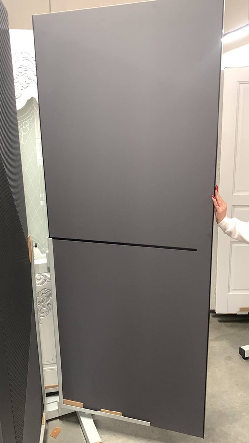 Щитовая дверь высокой прочности, которую обеспечивает жесткий тамбурат с малым размером ячейки и плита HDF (на 34% толще обычной). Используем PUR-клея необратимой полимеризации. По периметру двери установлена кромка чёрного цвета.