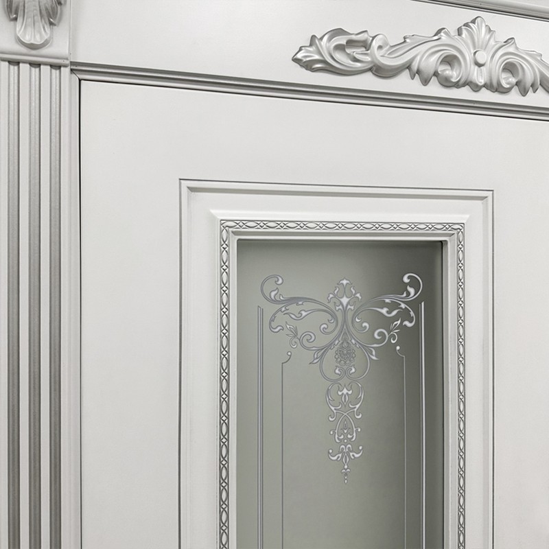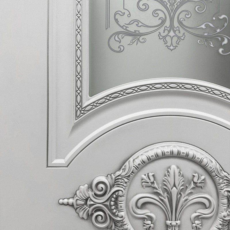 Межкомнатная дверь с элегантным дизайном и оригинальным оформлением дверного полотна, фигурной филенкой и стеклянной вставкой с изысканным узором. Полотно двери обладает высокими показателями тепло-, и шумоизоляции, не подвержено механическим воздействиям и устойчиво к влаге.