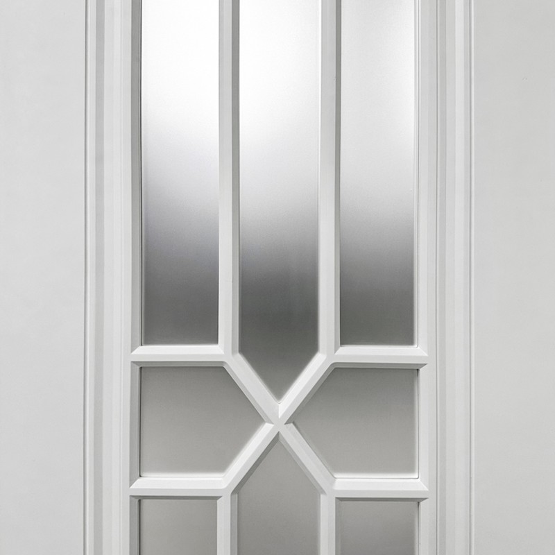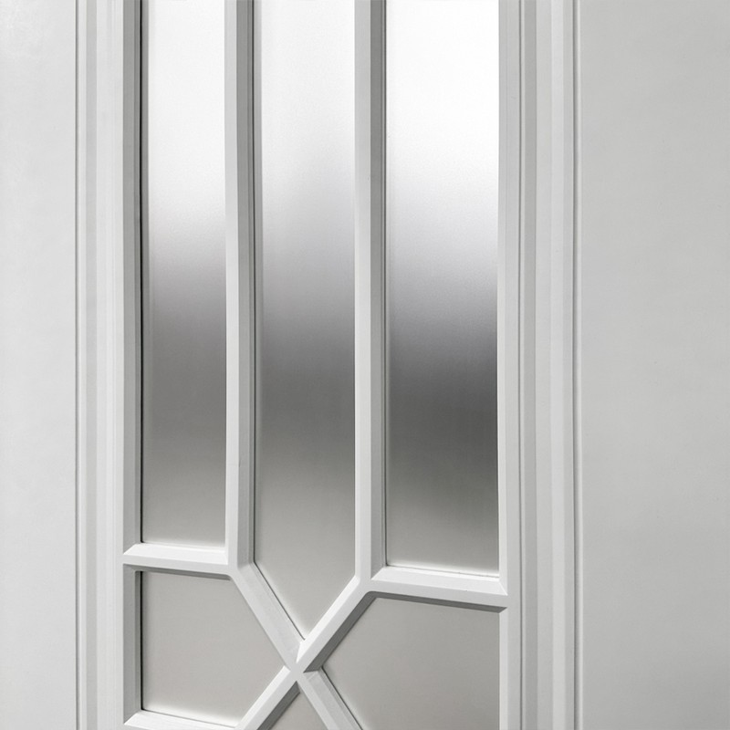 Межкомнатная дверь с матовым остеклением и решеткой с геометрически правильными линиями сочетает одновременно простой и оригинальный дизайн. Полотно двери устойчиво к влаге и механическим повреждениям, обладает высокими показателями износостойкости, термо- и шумоизоляции. Деверь отлично подойдет для установки на кухне, в спальне или гостиной, органично впишется в интерьер, оформленный в разных стилях. Можно сочетать с другими дверями из коллекции «Лира» для создания комплекта в едином стиле.