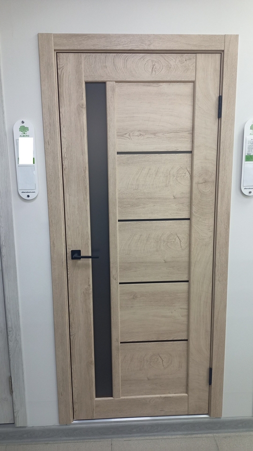 Межкомнатная дверь от фабрики Albero созданы для того, что бы порадовать Вас роскошной красотой модели: Модель относится к царговой конструкции двери. Состоит из сборных деталей (царг), образующих прочную рамочную конструкцию в которую установлены различные элементы изготовленные из МДФ, высокой плотности: 850 кгм3. В основе царг используется сосновый брус сечением 25х40мм. В остекленной модели используется матовое стекло с нейтральным теплым бронзовым оттенком. Финишное покрытие CPL TL - Это прочное текстурное многослойное облицовочное покрытие, в основе которого лежат натуральные компоненты, такие как: лак и целлюлоза, используя технологию прессования покрытие приобретает великолепные прочностные характеристики, а по своим свойствам напоминает тонкий пластик, оно не боится загрязнений и ультрафиолетового излучения, а так-же его легко мыть. Покрытие имеет древесный рисунок натурального шпона, по контуру, которого нанесены смоляные включения, образуя на поверхности объёмное изображение натурального покрытия. Дверь не имеет сторонности и является универсальной.