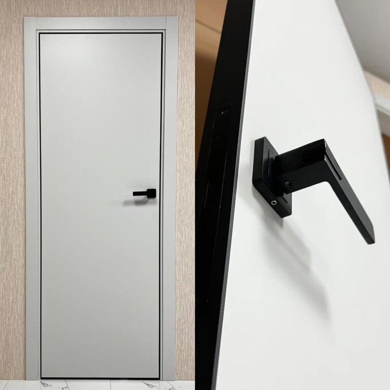 Щитовая дверь высокой прочности, которую обеспечивает жесткий тамбурат с малым размером ячейки и плита HDF (на 34% толще обычной). Используем PUR-клея необратимой полимеризации. По периметру двери установлена алюминиевая кромка чёрного цвета.